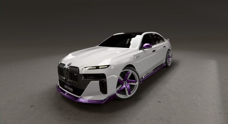 LARTE Design présente cette configuration comme un travail sur le contraste plutôt que sur la surenchère. Une teinte de carrosserie claire met en avant les volumes de la berline, tandis que les inserts en carbone violet soulignent la ligne de capot, le profil et l’arrière. L’objectif est de donner à la 760i une identité visuelle plus affirmée, sans dénaturer son caractère de limousine technologique.