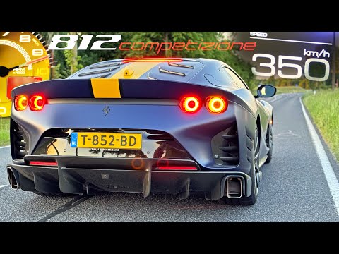 Lancée à 350 km/h en Ferrari 812 Competizione, il fait hurler le V12 atmosphérique de cette supercar italienne sur l’autobahn allemande.