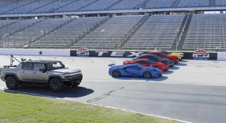 Aux États-Unis, la démesure fait partie de l’ADN automobile. Et même l’électrique n’échappe pas à la règle. La preuve avec une vidéo officielle publiée par GMC mettant en scène son impressionnant GMC Hummer EV face à une brochette de supercars sur l’ovale du Texas Motor Speedway.