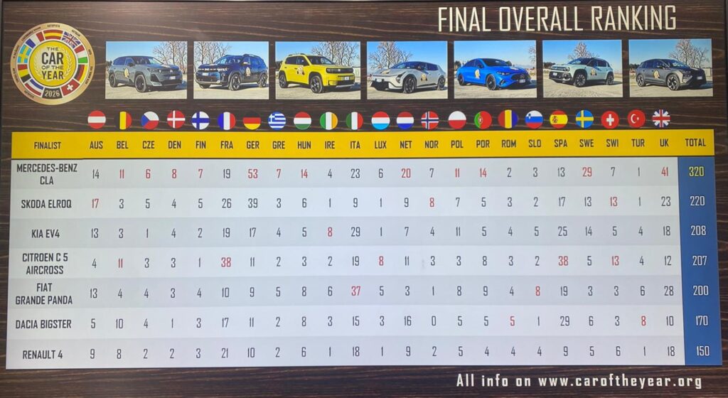 Voiture de l'Année 2026 (COTY) : Mercedes dame le pion à Renault (+ classement)