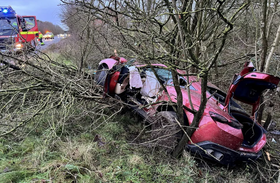 Une Ferrari Roma lourdement accidentée sur route glissante !