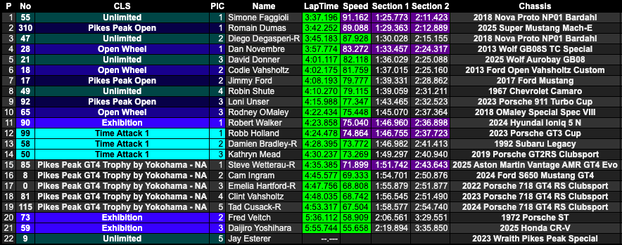 Le classement complet de Pikes Peak 2025 est à retrouver ci-dessous :