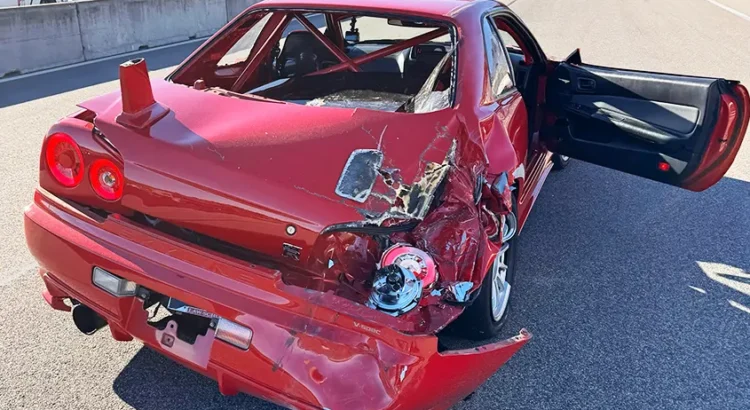 Lors d'un évènement sur le circuit de Laguna Seca, en Californie, sous drapeau rouge, deux Skyline GT-R à l’arrêt ont été violemment percutées par un engin de service.