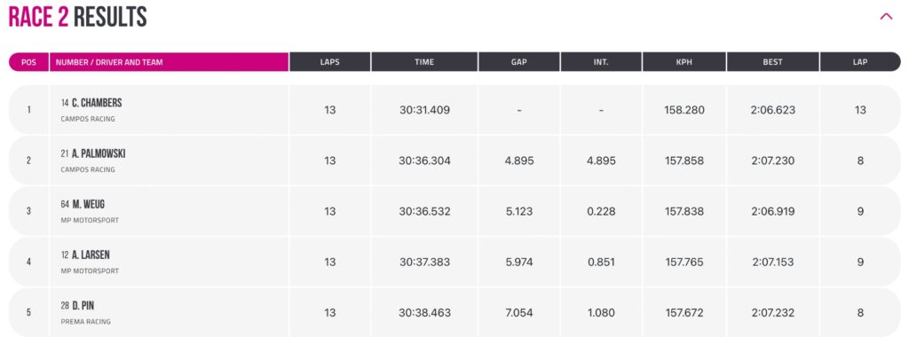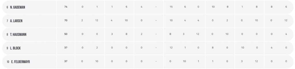 En fin de course, Palmowski reprenait l’avantage sur Weug, tandis