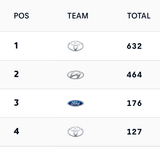 WRC 2025 : classement mondial des Teams (provisoire après l'Europe Centrale)