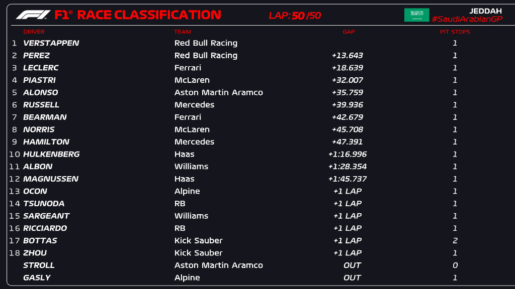 GP d'Arabie saoudite F1 2024 : classification officielle
