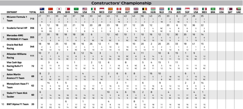 Malmené par la remontée de Piastri, les "flèches d'argent" devaient finalement de contenter du tir groupé, mais loin du podium. Lewis Hamilton finissait au huitième rang, après avoir écopé d'une pénalité de dix secondes pour avoir coupé un virage par la voie de secours, suivi dans le top 10 pat Esteban Ocon (Haas) et Gabriel Bortoleto (Sauber).