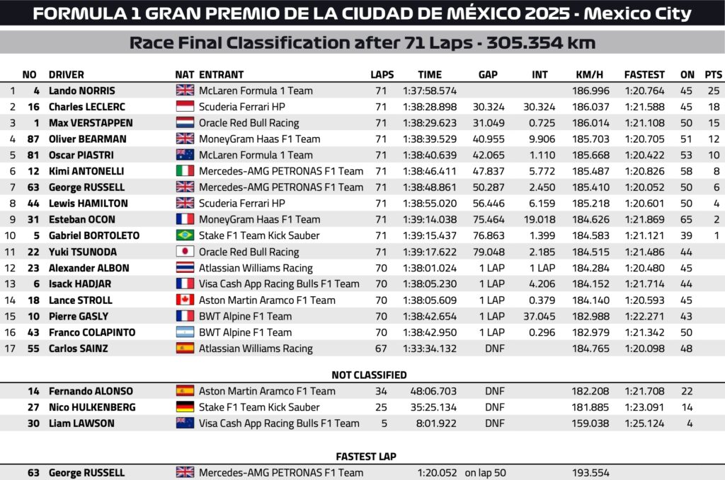 GP du Mexique F1 2025 : Norris en mode "patron"