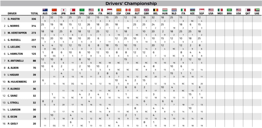 Saison F1 2025 : le classement provisoire des Pilotes