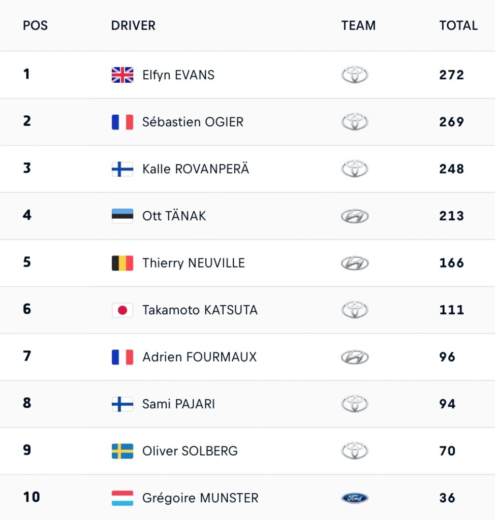 WRC 2025 : classement mondial des Pilotes (top 10 provisoire après le Japon)