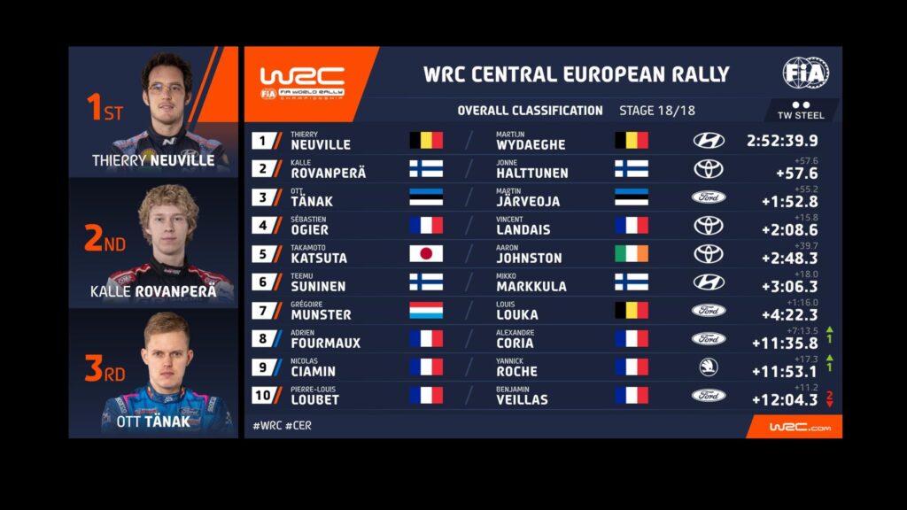 WRC - Rallye d'Europe Centrale : Neuville vainqueur, 2ème titre pour Rovanperä