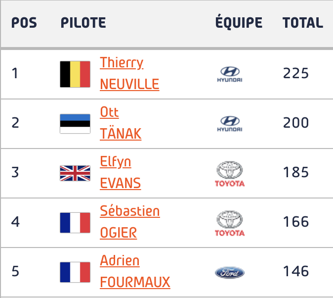 WRC 2024 : top 10 Pilotes (avant le Japon)
