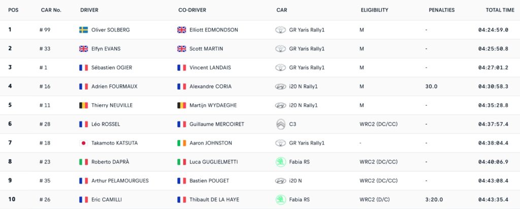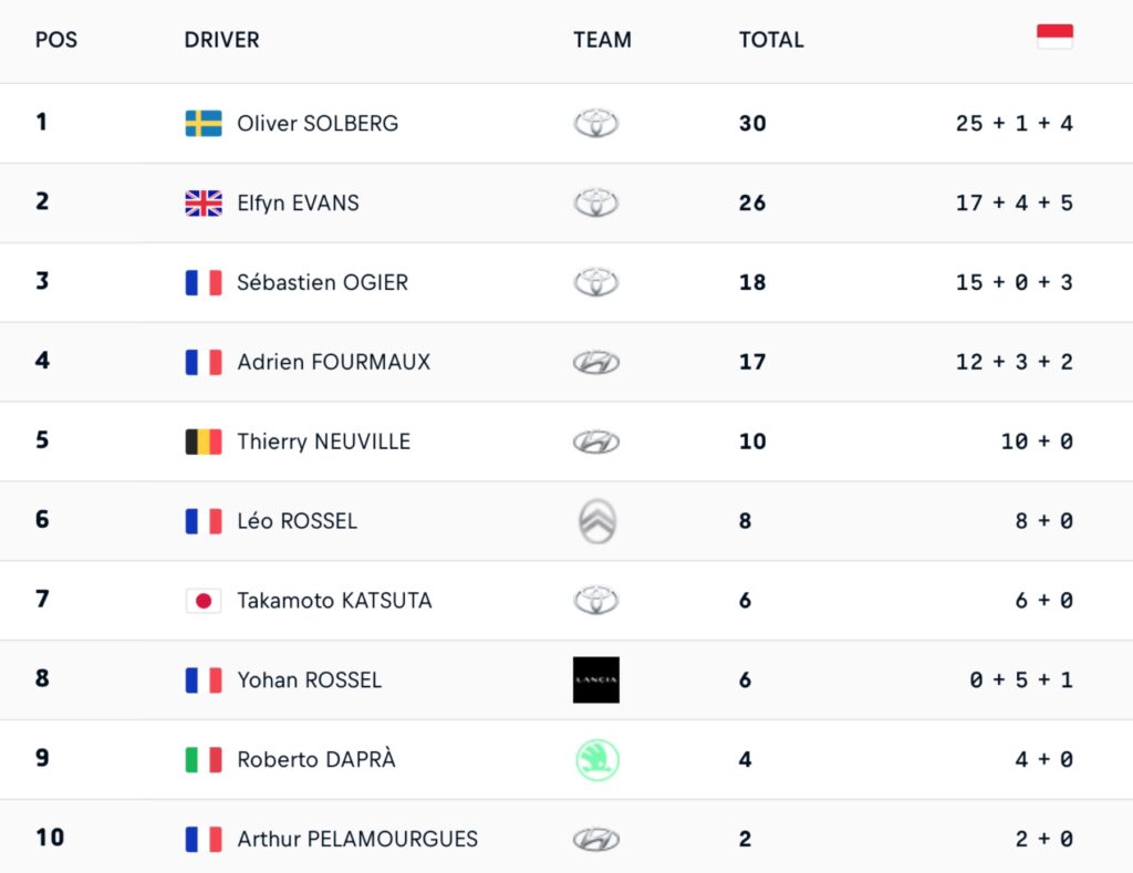 WRC 2026 : le classement provisoire des Pilotes (top 10)