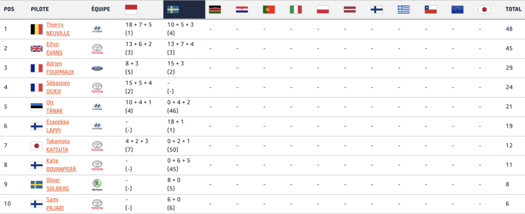 WRC 2024 : classement provisoire des pilotes (top 10)