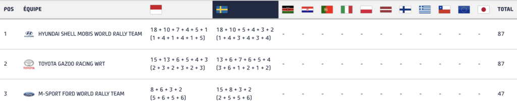 WRC 2024 : classement provisoire des teams