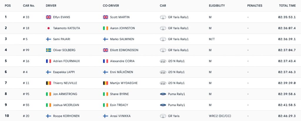 Rallye de Suède WRC 2026 : le classement officiel (top 10)