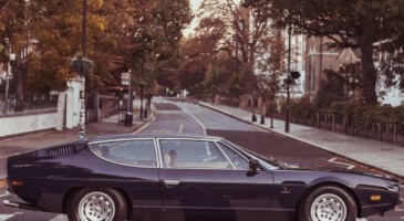 Une Lamborghini Espada pose comme les Beatles