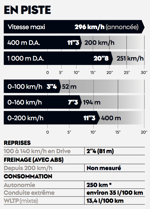 Elle franchit donc la borne du kilomètre avec deux petits dixièmes derrière (20”8 contre 20”6). Le fait que les mesures ont été réalisées à Montlhéry et non à Mortefontaine comme avec la GT3 pourrait justifier cet écart, mais la différence s’explique autrement.