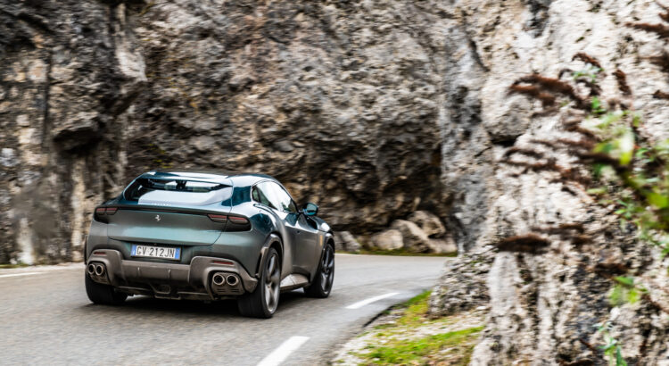 Pour véritablement jauger les aptitudes du Purosangue, il faut commencer par choisir un terrain de jeu à la hauteur. Le Vercors ! Au départ de Lyon, où l’on s’empresse de quitter les grands axes en direction de Valence avant de bifurquer, au hasard, vers le col de la Machine. Voilà qui sonne bien. Presque autant que le 6,5 litres, que l’on tire de sa torpeur et qui résonne déjà dans le creux de l’oreille comme une mélodie douce et enivrante. La note parfaite, ni trop aiguë ni trop grave, et sans les détonations surjouées des SUV qui bombent le torse en éructant.
