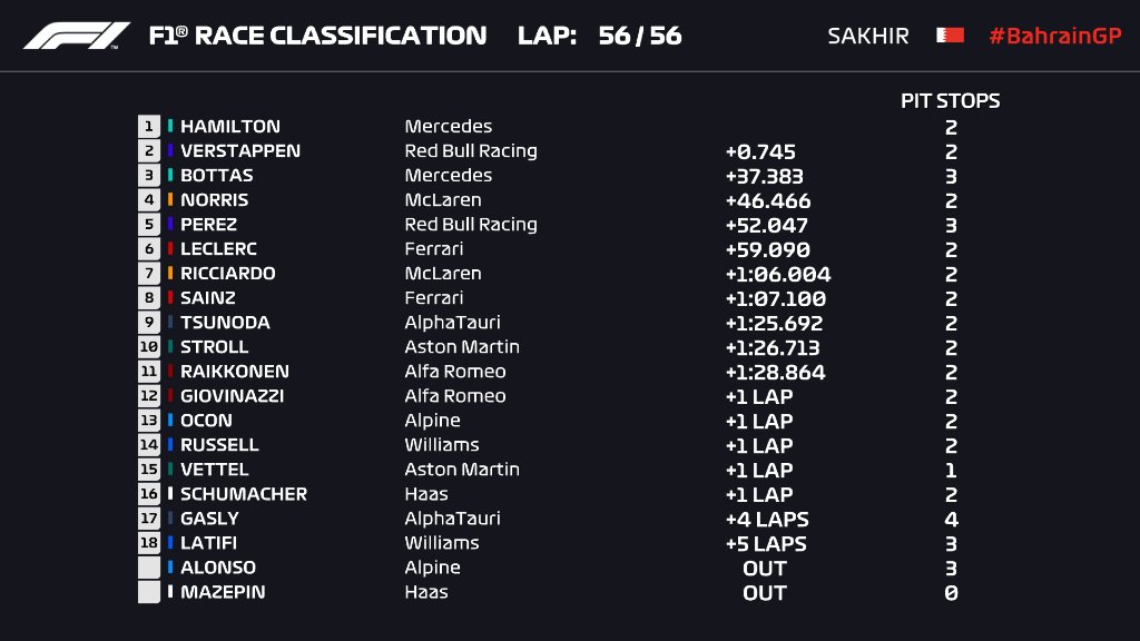 Classification finale du Grand Prix de Bahreïn de F1 2021 :