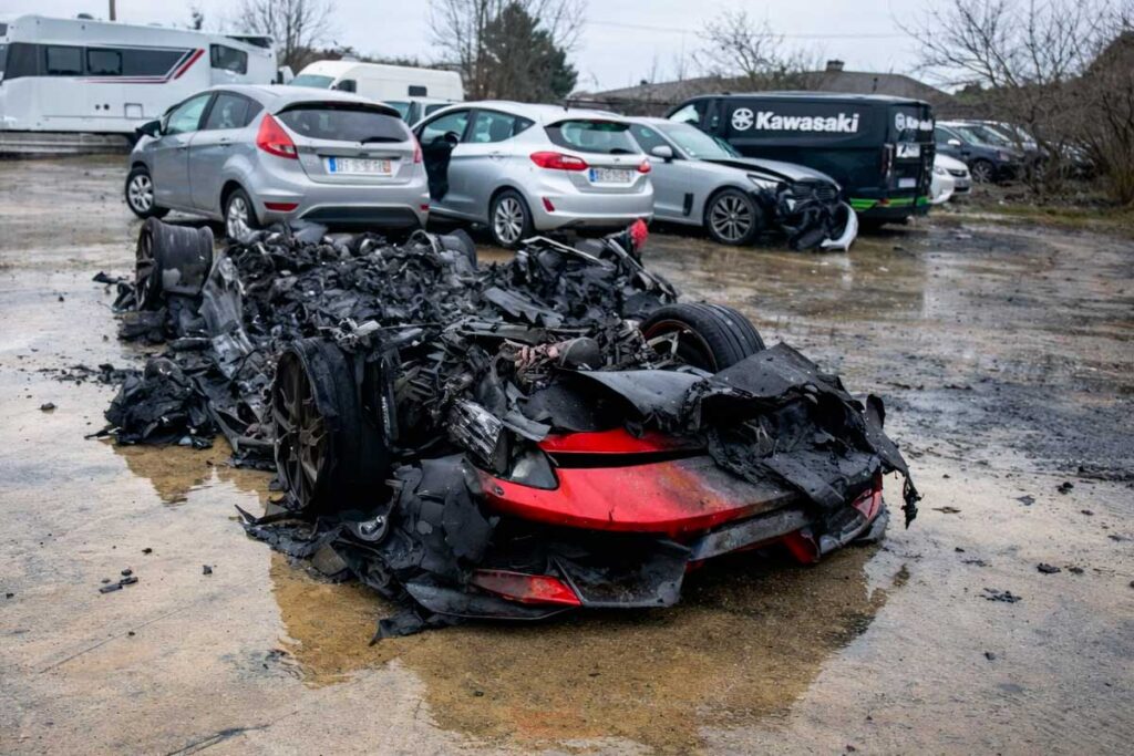 Ferrari 488 Pista : volée, accidentée, elle finit totalement détruite par les flammes (+image)