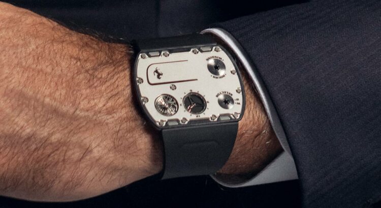 Baptisée RM UP-01, cette montre est le fruit d’une collaboration avec Ferrari. Il s’agit ici de la montre mécanique la plus mince au monde.