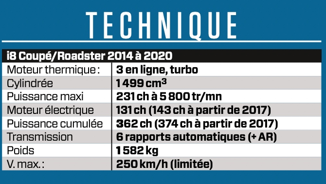 BMW i8 (2014-2020) : coup d'oeil sur sa fiche technique