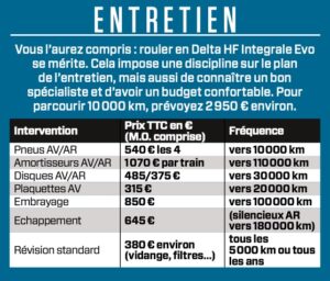 Lancia Delta HF Integrale EVO : quels coûts d’entretien ?