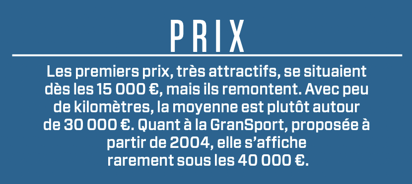 Si l’on ajoute une géométrie, la facture peut vite s’envoler à 2 845 € pour le train avant et 3 410 € pour l’arrière. Enfin, comme sur toutes les GT de ce calibre, les jantes sont très exposées et souvent marquées.