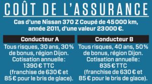 Affichée, en neuf, jusqu’à l’été 2012 à partir de 40 950 €, la 370Z a frappé un grand coup, avec une version restylée abaissant le ticket d’entrée pour le coupé à 32 900 €. De quoi secouer le marché de l’occasion en dépit du malus de 6 000 € qui frappait à l’époque les modèles neufs.