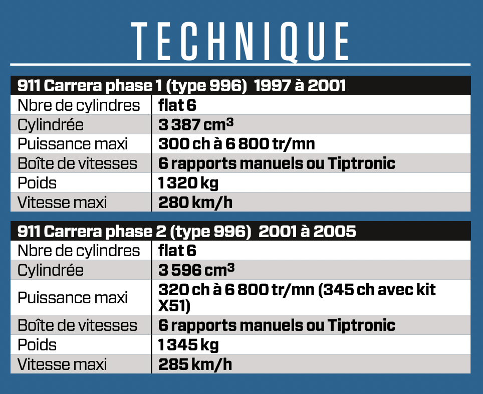 Porsche 911 (Type 996) : sa fiche technique