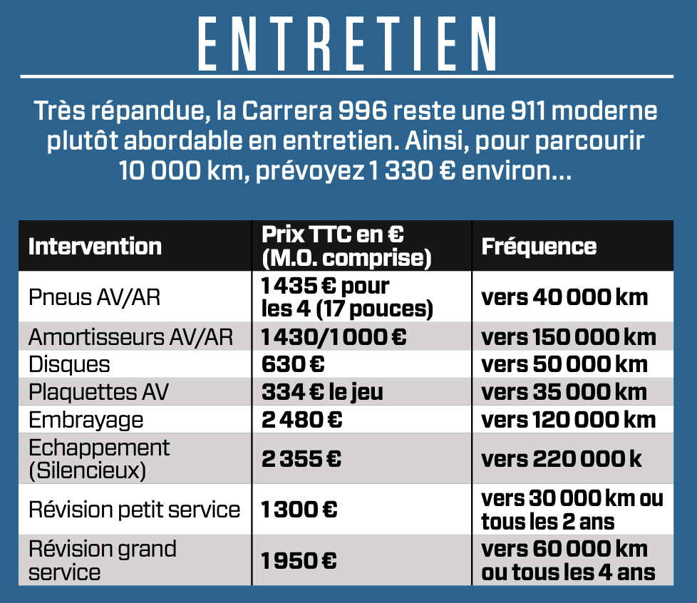 000 km, soit 807 € de pièces, sans compter la main-d’œuvre. Porsche