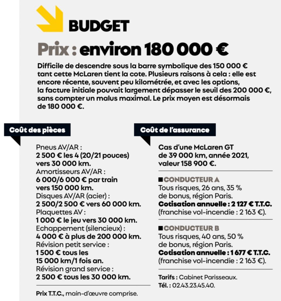 La présence de turbos impose de bien respecter les temps de mise en température, mais aussi de refroidissement en cas de forte sollicitation. Pour garantir son bon fonctionnement, McLaren préconise une petite révision annuelle dans la limite de 15 000 km (1 500 € dans le réseau) et une grosse intervention intermédiaire, coûtant 2 500 € environ.
