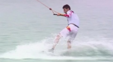 Jaime Alguersuari et Sébastien Buemi font du wakeboard