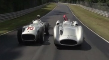 Nico Rosberg et Michael Schumacher au volant des Mercedes W196